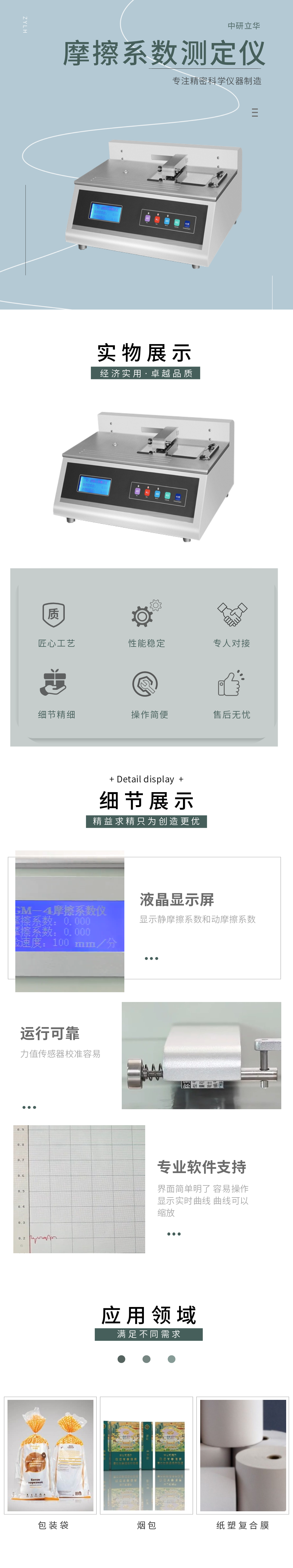 用途:摩擦系數(shù)測定儀用來測定塑料薄膜、薄片、紙張等材料在自身或其他材料表面滑動時的摩擦系數(shù),應(yīng)用于質(zhì)檢、藥檢、科研、包裝、薄膜、食品、藥品、日化等行業(yè)。